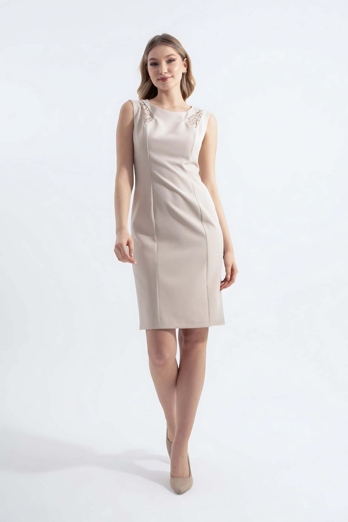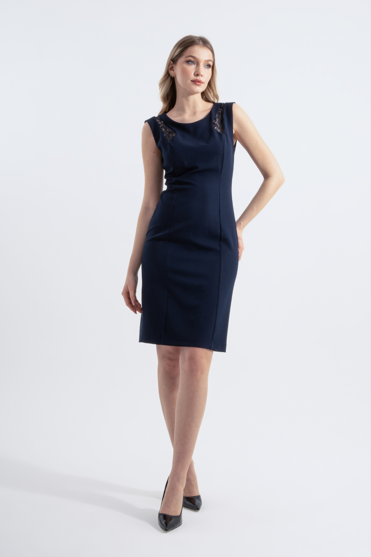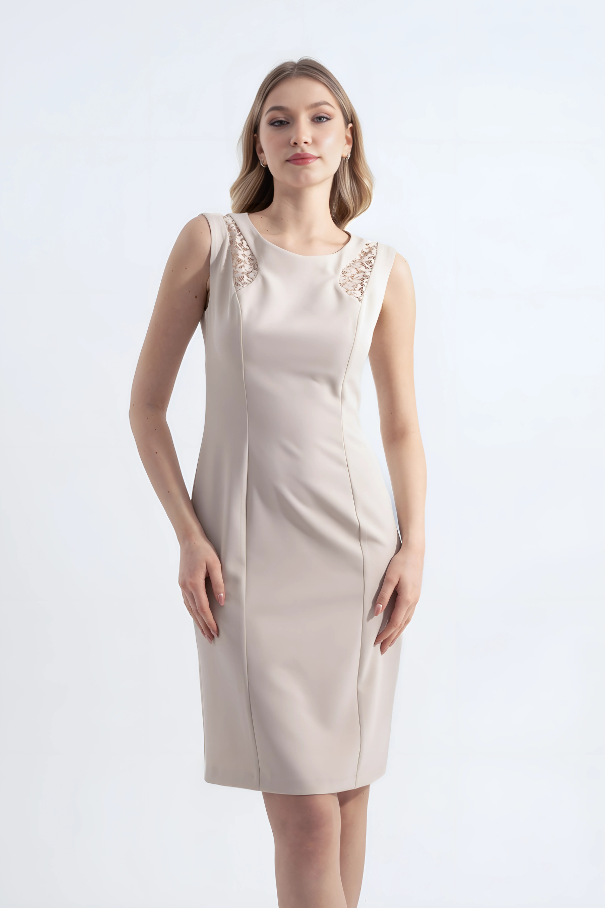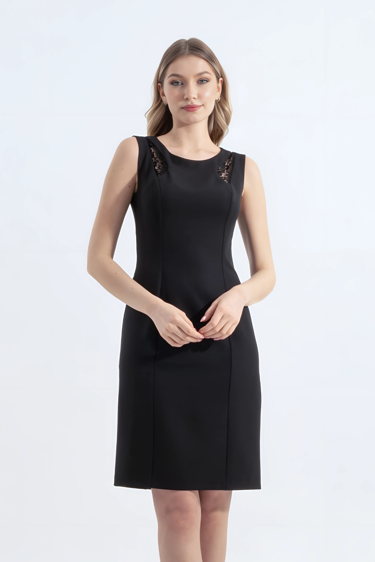 This unique pencil dress, with its extraordinary bistrech woven fabric, simple and elegant design, perfect harmony with body curves and lace-trimmed cut-out neckline, is designed for you to be the star of the environment you are in. The product will be indispensable in your wardrobe as a versatile option that can be used comfortably in all kinds of invitations and organizations as well as business life.