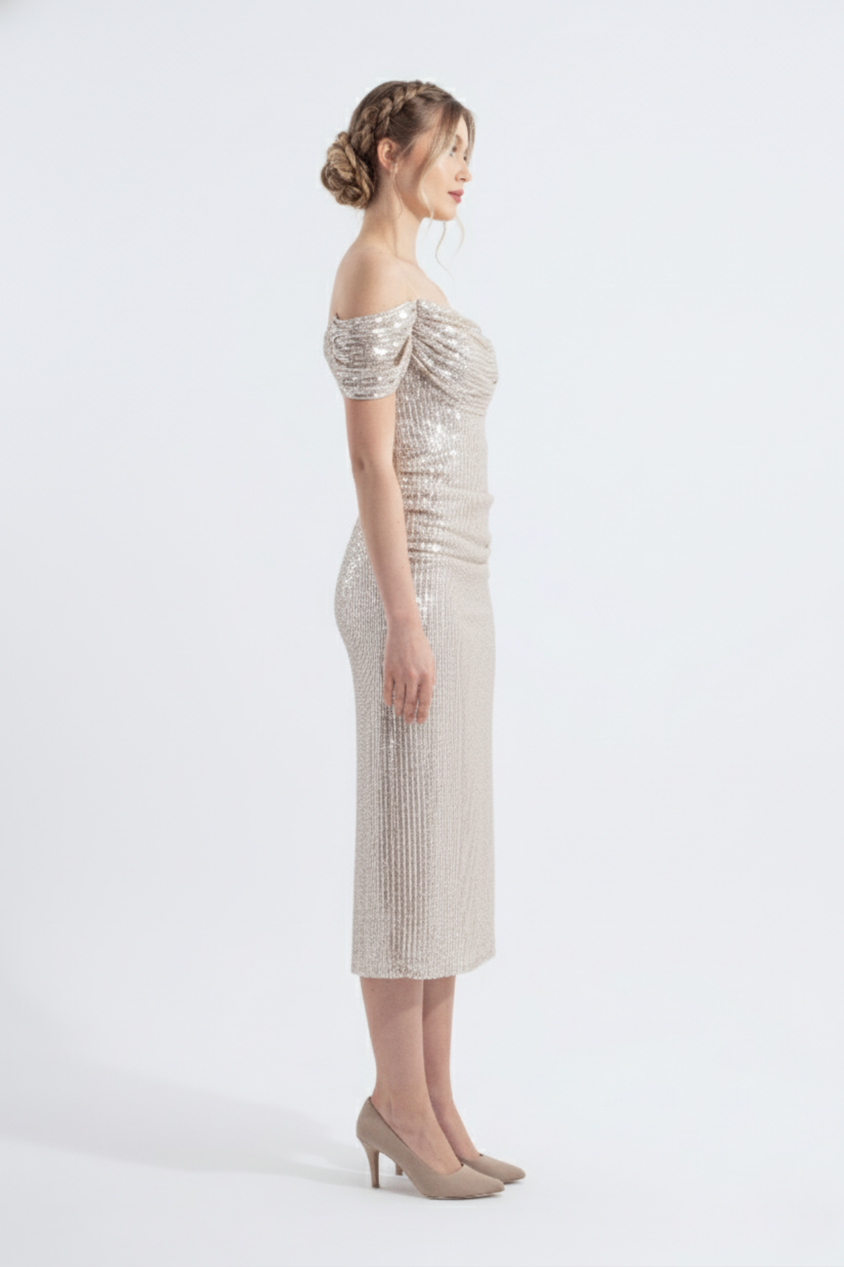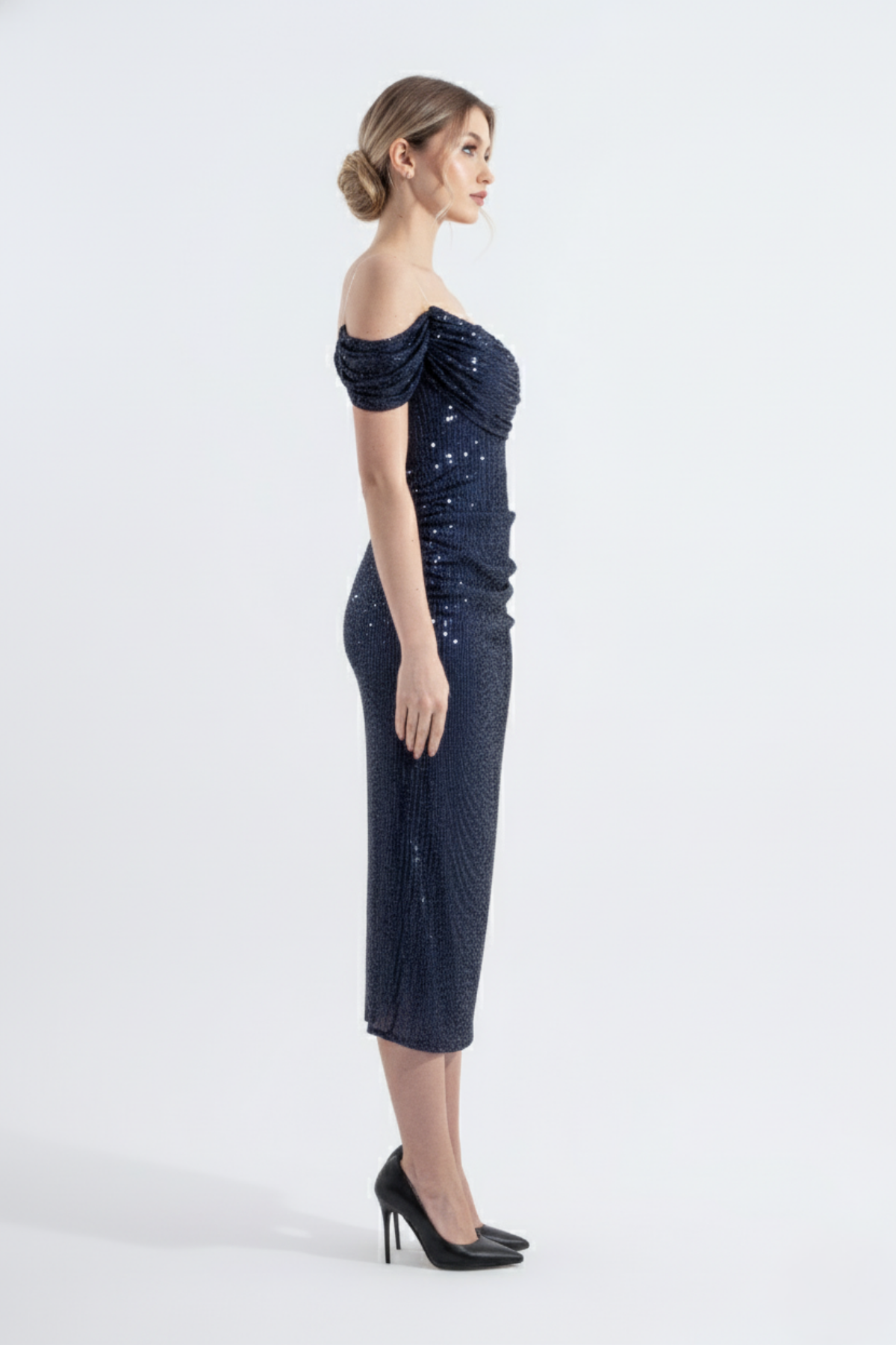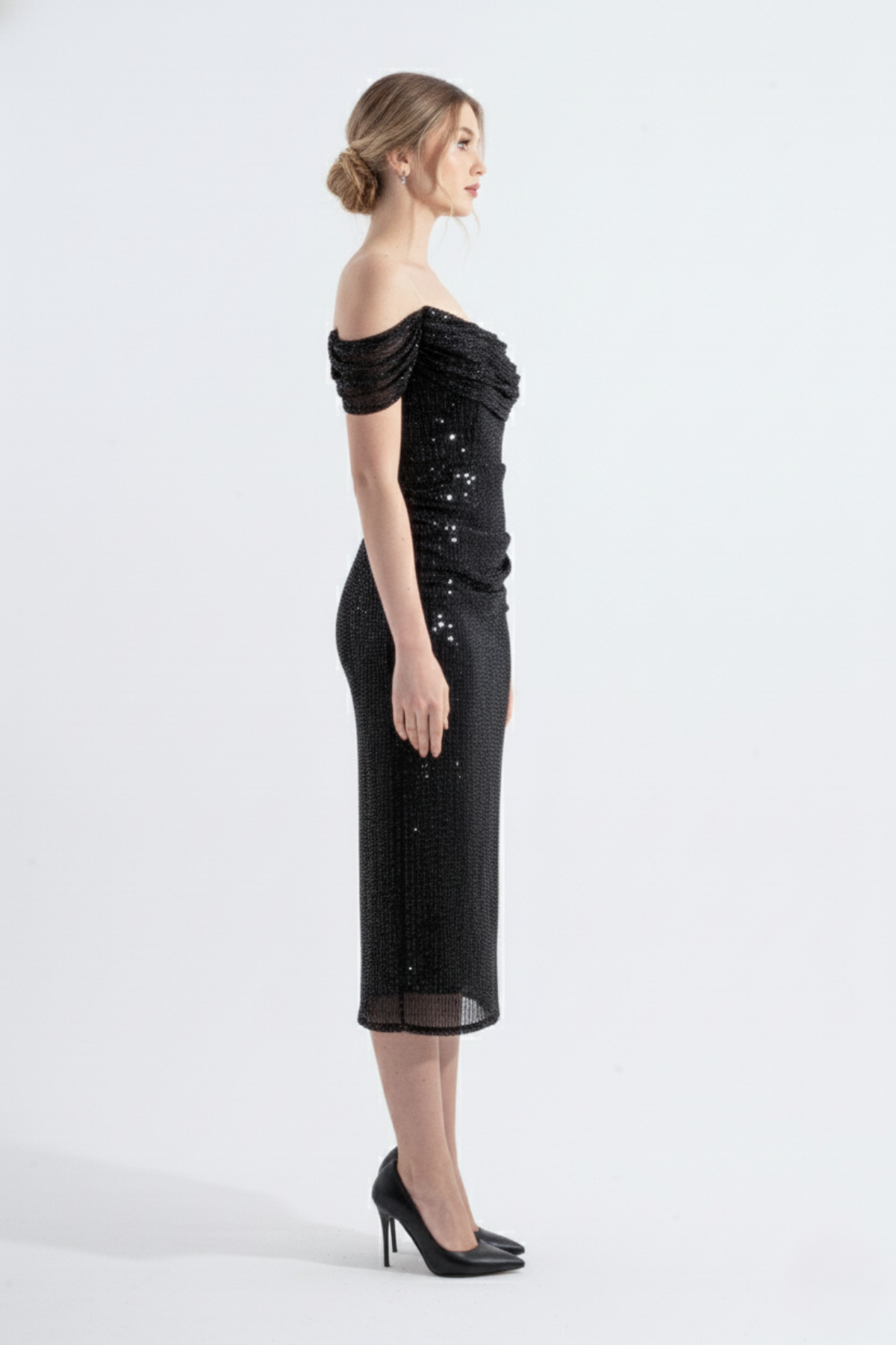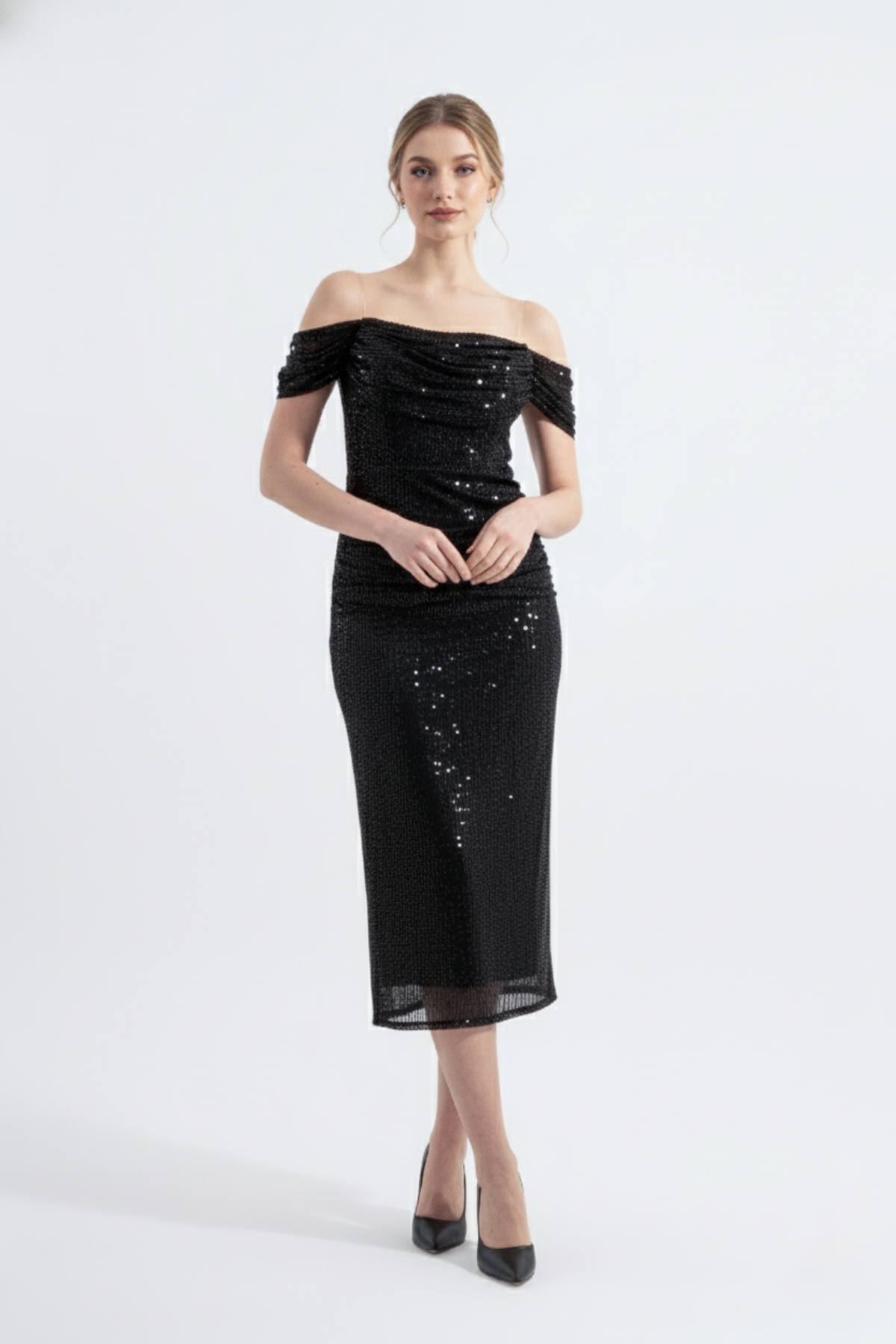 [Информация о товаре] Это платье премиум-класса, разработанное для комфортного ношения, имеет длину миди, облегающую посадку, крой «карандаш», прозрачные силиконовые бретели, вид без бретелек, воротник «кармен», низкую спину, низкие рукава, отделку aller на груди, драпированный живот, разрез сзади, потайную молнию сзади и полностью на подкладке. Это очень шикарное изделие с женственным и элегантным стилем. Это вечернее платье было произведено с нулевым дефектом на фабрике HOX'S в Стамбуле с использованием тщательно отобранных высококачественных материалов, с мастерством, исходящим из древней традиции. Каждое изделие HOX'S - драгоценное произведение искусства. Это вечернее платье, к которому с помощью специального зажима и ленты прикреплена карта безопасности возврата, сложено в пыленепроницаемый крафт-картон и помещено в упаковочный желатин, прежде чем быть доставленным его ценному владельцу в очень элегантной коробке.